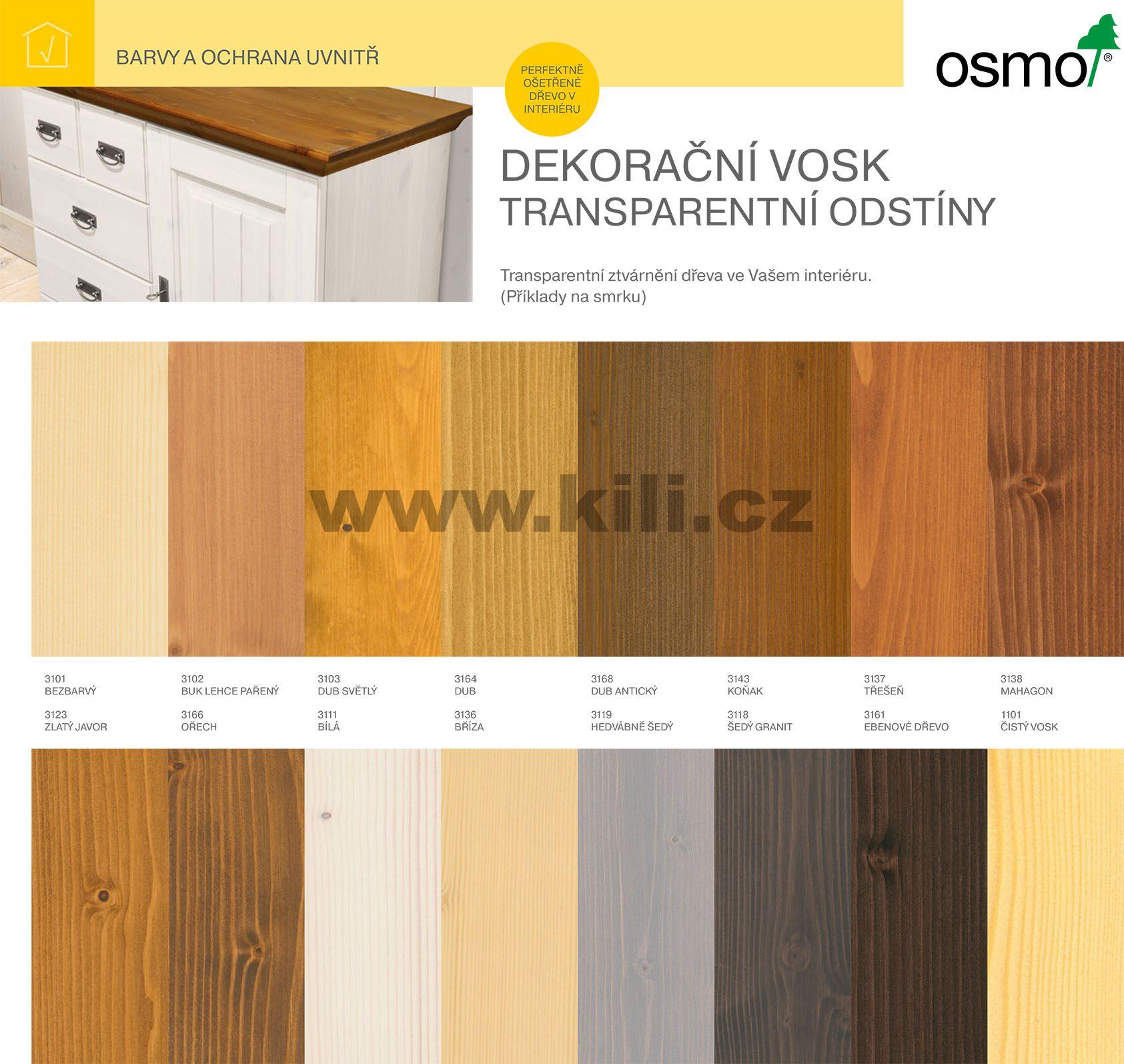 Transparentně zbarvený nebo intenzivně zbarvený, polomatný nebo matný, k použití uvnitř