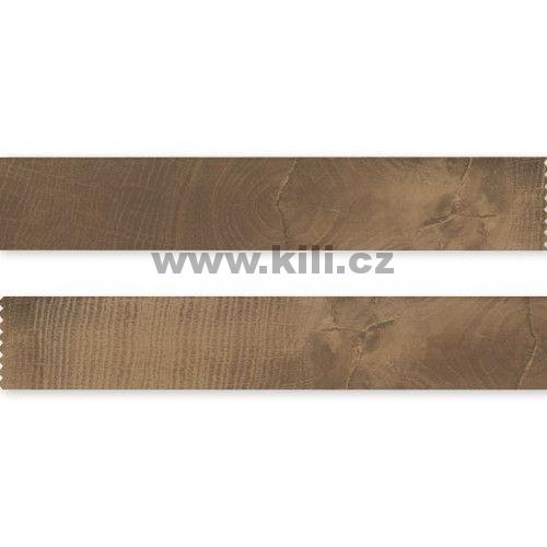 Čelní hrany vyzvihují přirozený vzhled dekorů. Ve spojení s odpovídající podélnou hranou vytváří celkově sladěný obraz, který připomíná čelní řez dřevem.
