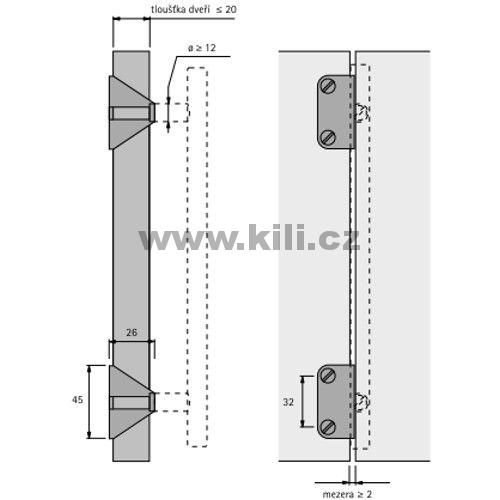 • Adaptér lze použít pro všechny úchytky při maximální tloušťce dveří 20 mm a dosedací ploše úchytky větší než ? 12 mm