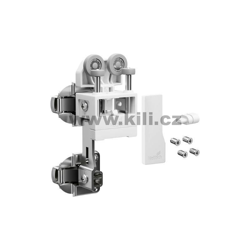 • Sada obsahuje díly pro dveře se 2 křídly: vozík s dvojitým závěsem, krytku a spojovací materiál