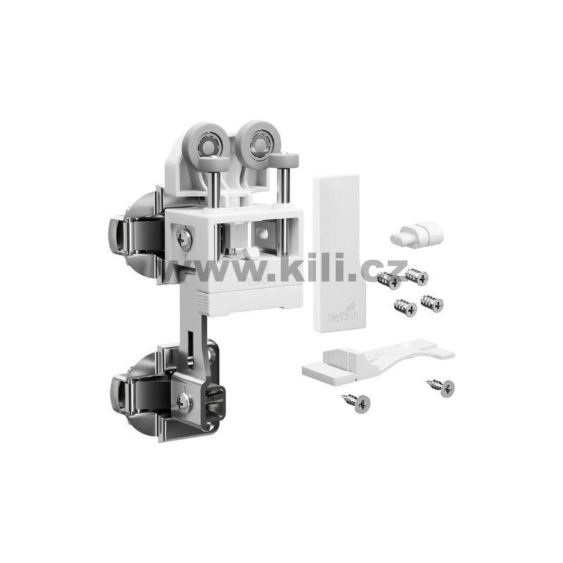 • Sada obsahuje díly pro dveře se 2 křídly: vozík s dvojitým závěsem, krytku a spojovací materiál