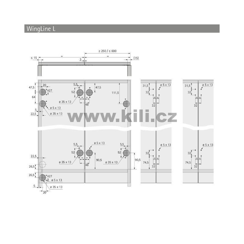 Vrtací šablonu pro skládané dvěře se dvěma křídly