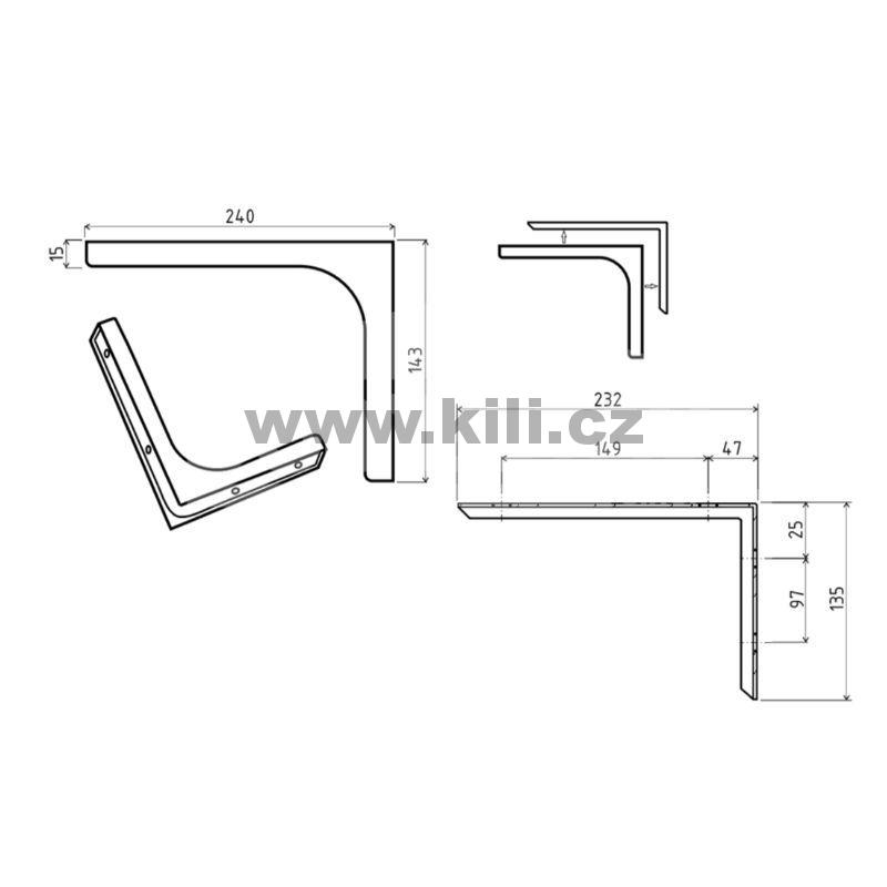 | Specifikace | Délka: 240 mm Výška: 143 mm Nosnost: 25 kg |