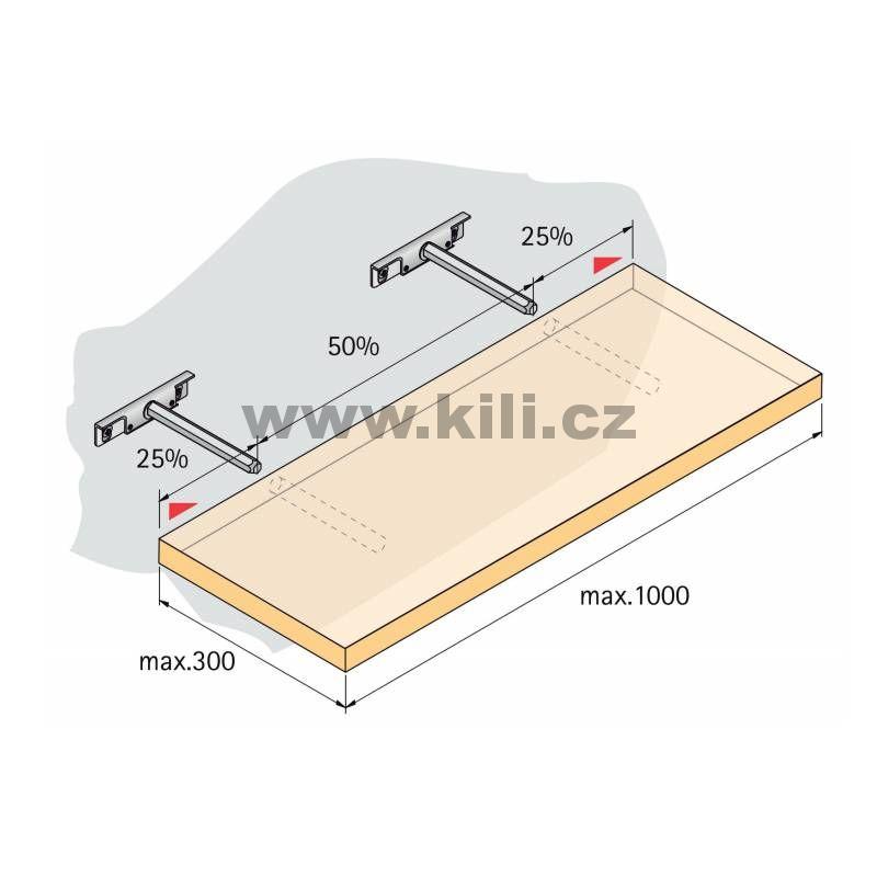 • Max. nosnost při rozměrech police 1000 × 300 mm je 50 kg / m?, 1000 × 250 mm je 100 kg / m?, 1000 × 200 mm je 160 kg / m?