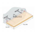 • Max. nosnost při rozměrech police 1000 × 300 mm je 50 kg / m?, 1000 × 250 mm je 100 kg / m?, 1000 × 200 mm je 160 kg / m?