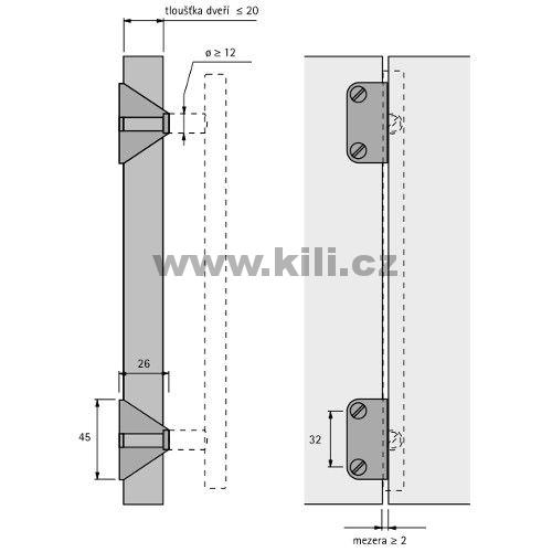 • Adaptér lze použít pro všechny úchytky při maximální tloušťce dveří 20 mm a dosedací ploše úchytky větší než ? 12 mm