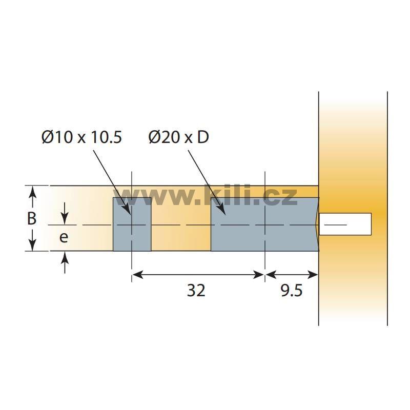 (Bez límce. Límec zajistí, že nasazená police na táhlo před uzamčením nevypadne a police je možné nasunout pouze shora, camfix s límcem se objednává pod jiným objednacím číslem)