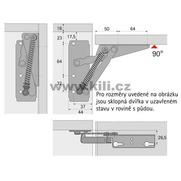 Odkaz na stránky výrobce: Výklopné kování Lift 90, nosnost 3,3 kg, s pružinu se sílou 180 N