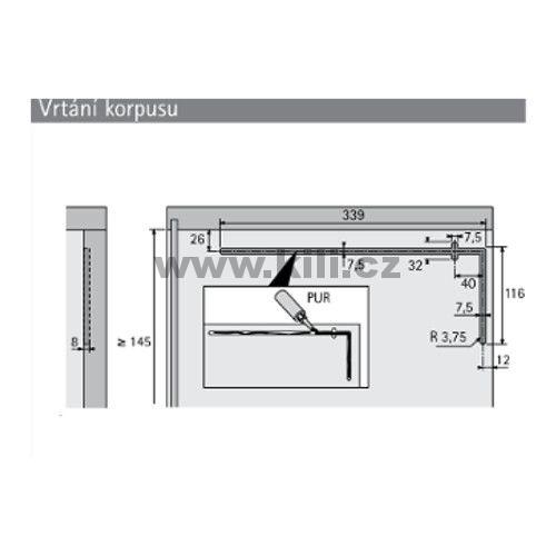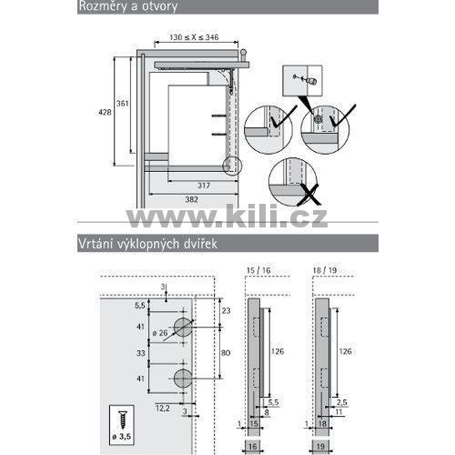 • Rozměry výklopných dvířek: výška 145 - 400 mm, šířka max. 1200 mm