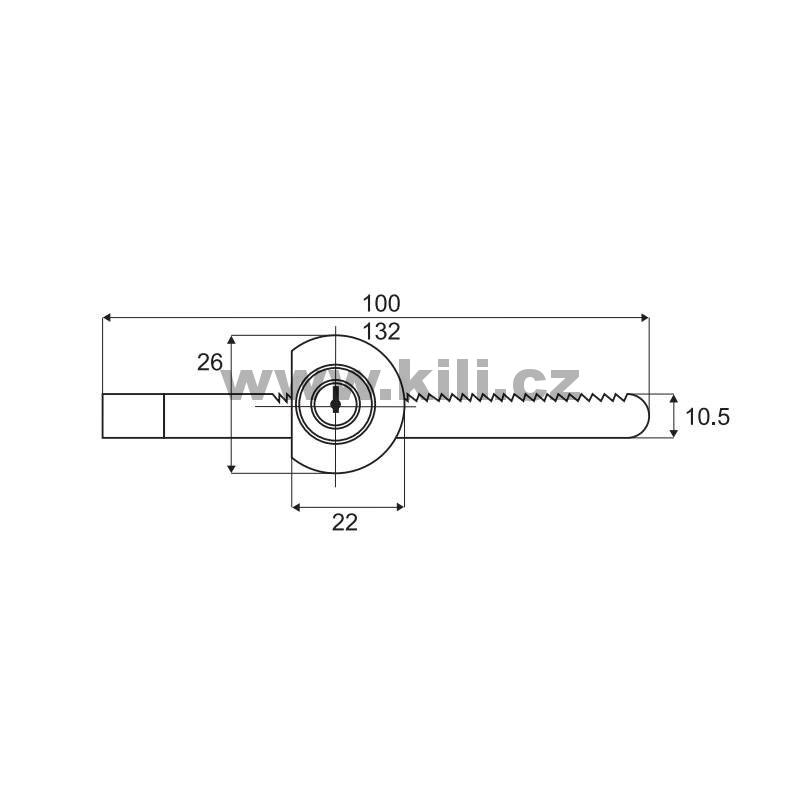 odnímatelný zámek, ozubené blokovací táhlo, 2ks klíče, šroub k uchycení