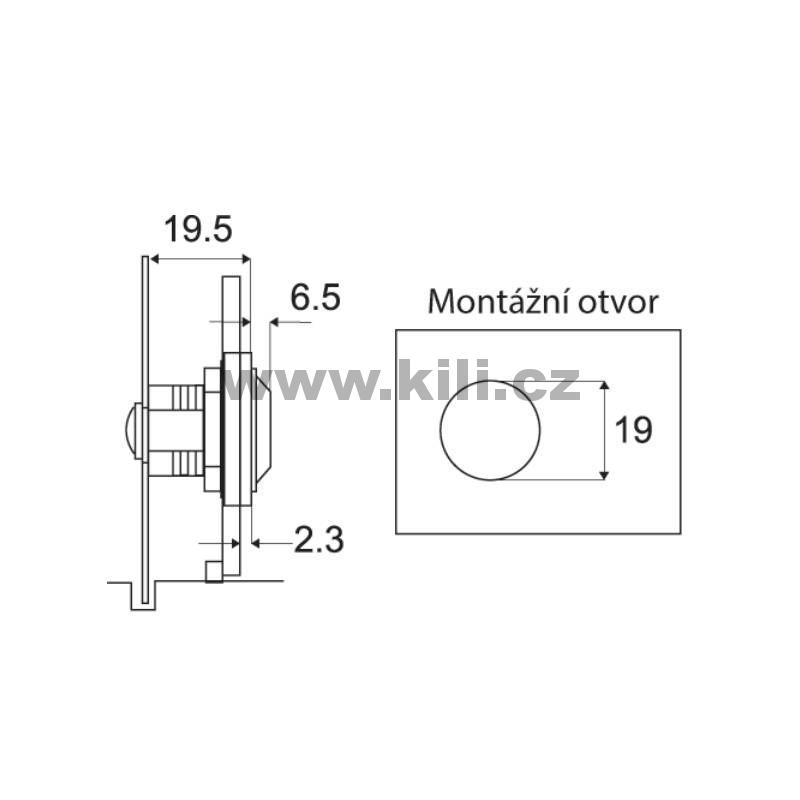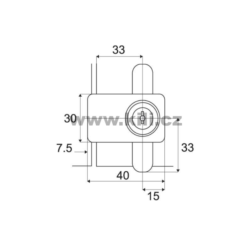 Zámek slouží k uzamykání dvou skleněných křídel do půdy nebo dna korpusu. Nutno vrtat otvor do skla.