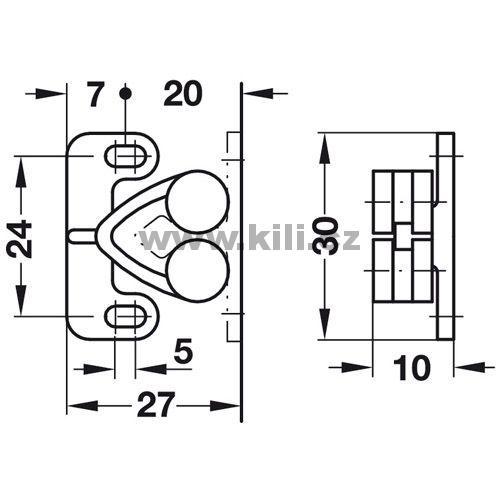Dvojitá kuličková západka k přišroubování plast - hnědá