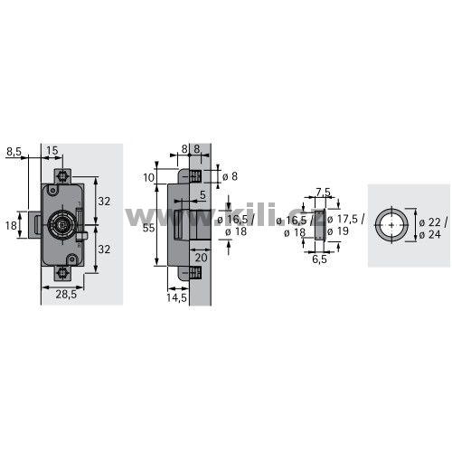 Odkaz na stránky výrobce: Zámek Z23 třícestný k nalisování, D15 nikl