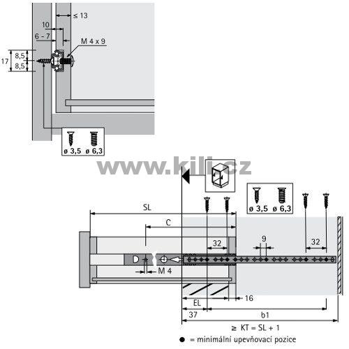 Odkaz na stránky výrobce: Kuličkový částečný výsuv KA 1730/550 do drážky 10kg