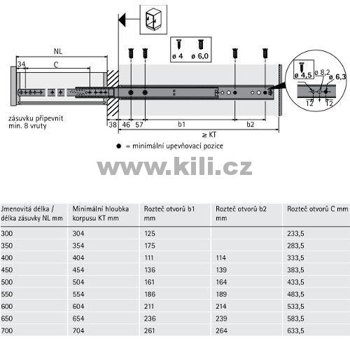Odkaz na stránky výrobce: Kuličkový plnovýsuv KA 4620/650 na bok EB19 90kg