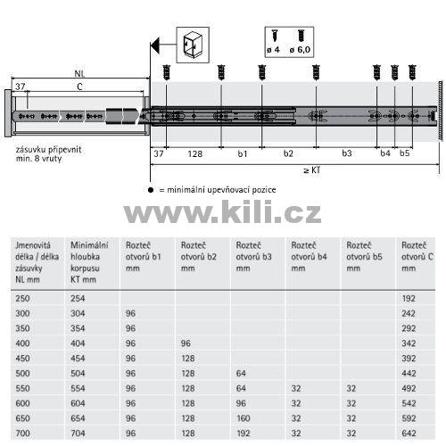 Odkaz na stránky výrobce: Kuličkový plnovýsuv KA 5632/650 na bok EB12,7 45kg