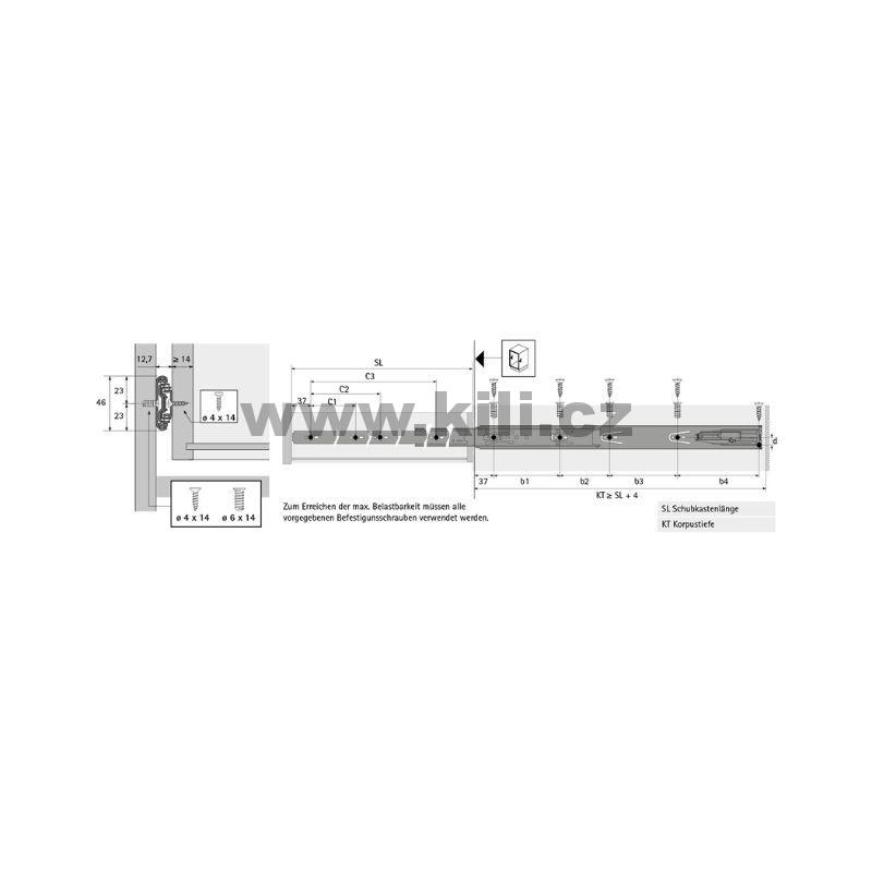Odkaz na stránky výrobce: Kuličkový plnovýsuv KA 5632 SC/450 na bok EB12,7 30kg s dotahem, černý