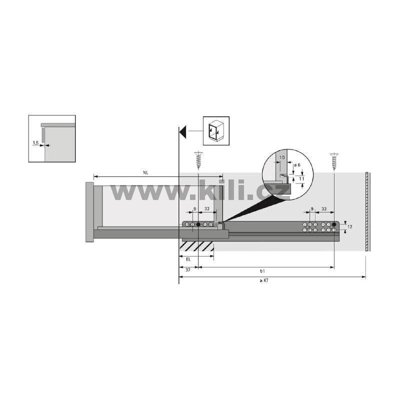 • Pro tloušťku boků zásuvky až 19 mm