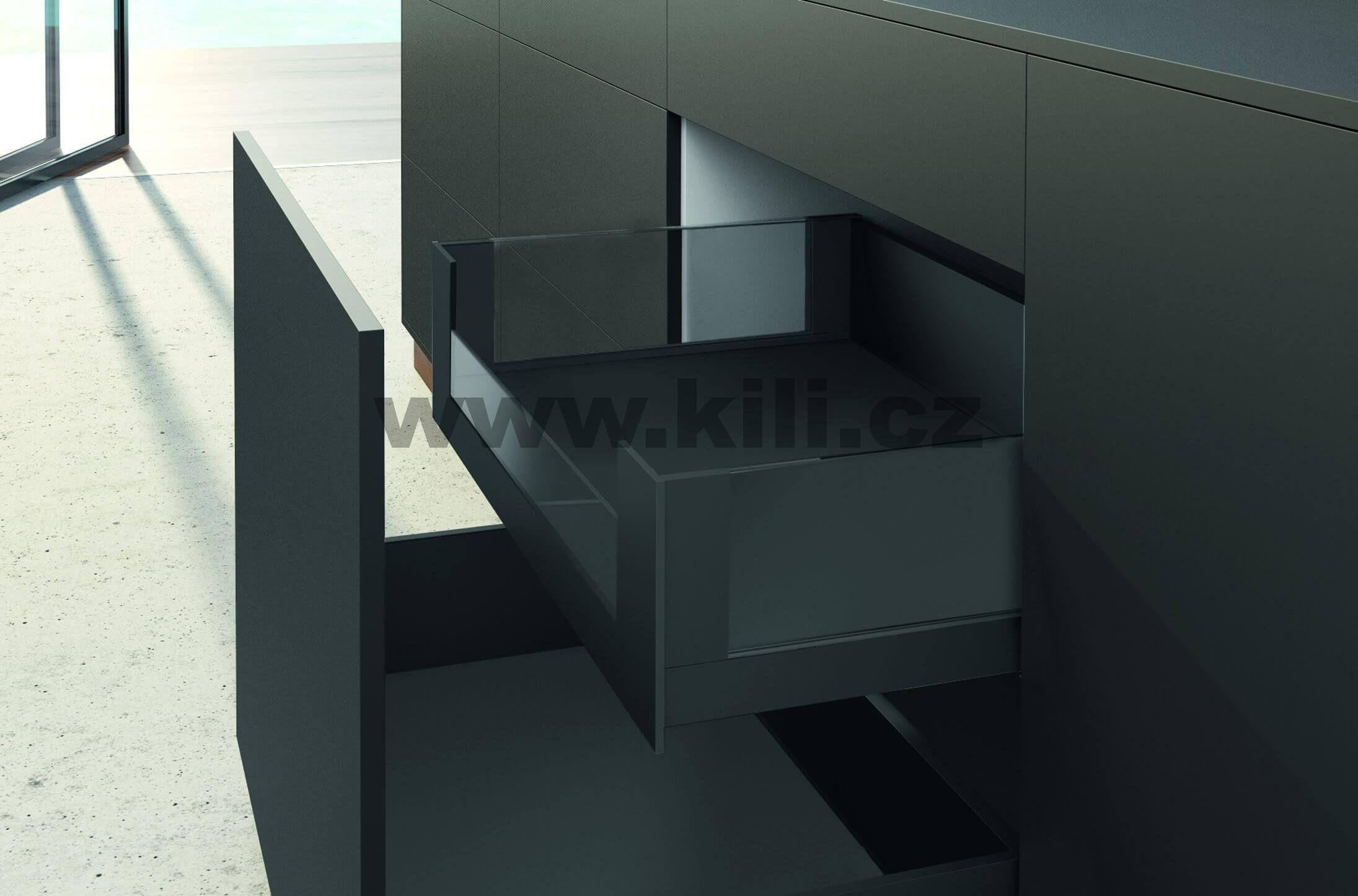 Kompletní vnitřní zásuvka AvanTech YOU Inlay antracit 187 mm 650 mm plnovýsuv Actro YOU 70 kg s tlumením
