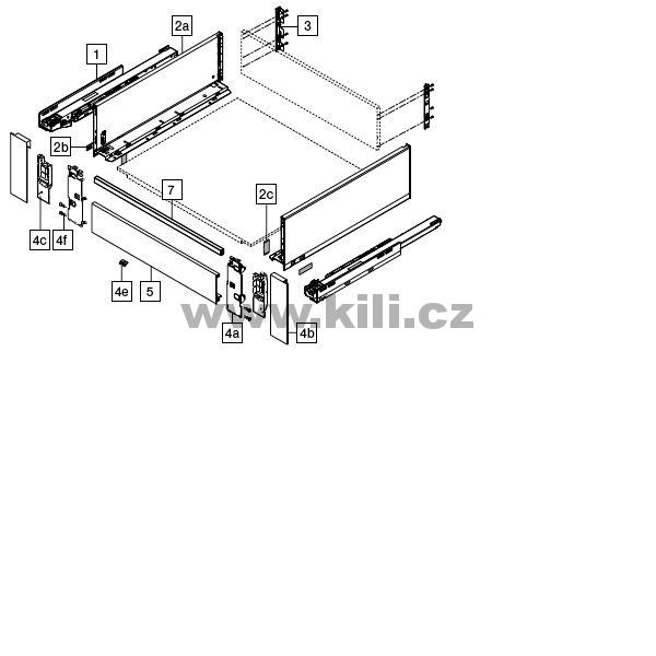 Kompletní vnitřní zásuvka LEGRABOX bílá "C" s relingem 300 mm 40 kg s tlumením