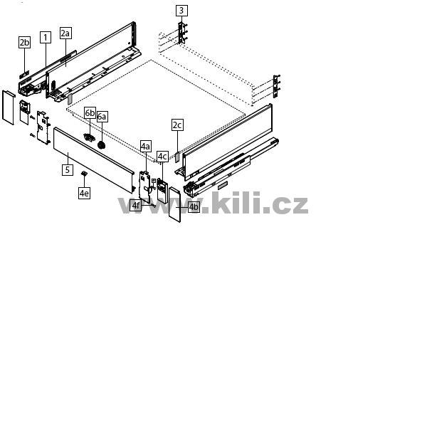 Kompletní vnitřní zásuvka LEGRABOX černá "K" 600 mm 40 kg s tlumením