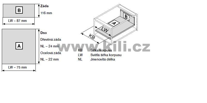 Kompletní vnitřní zásuvka TANDEMBOX Antaro bílá "K" 400 mm 30 kg s tlumením