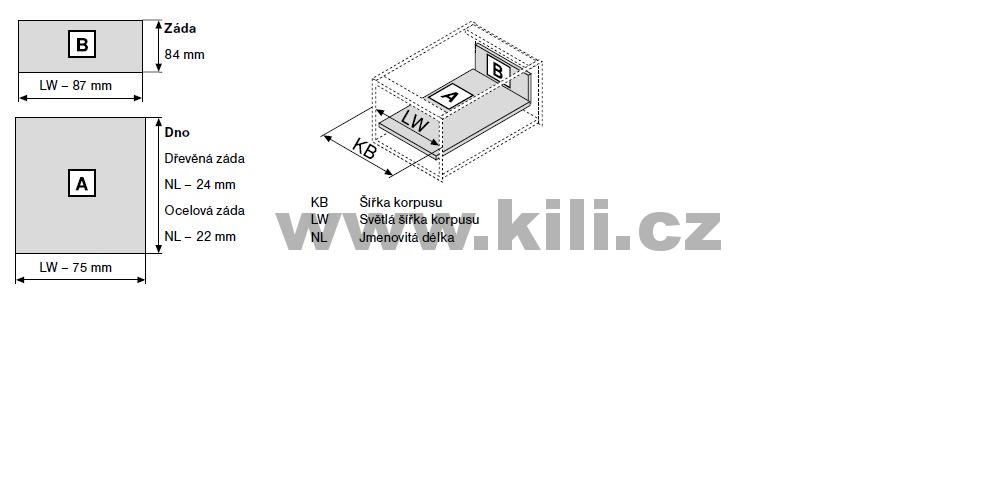 Kompletní vnitřní zásuvka TANDEMBOX Antaro bílá "M" 500 mm 30 kg s tlumením