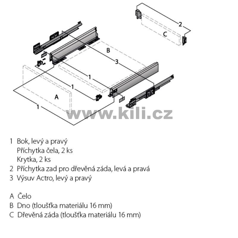 Kompletní zásuvka ArciTech stříbrná 94 mm 270 mm 40 kg Push to open Silent