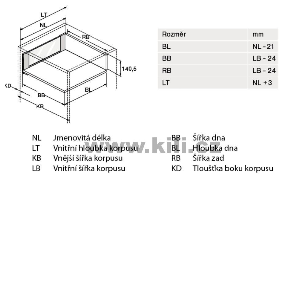 Kompletní zásuvka AvanTech YOU Inlay antracit 187 mm 400 mm plnovýsuv Actro YOU 40 kg s tlumením