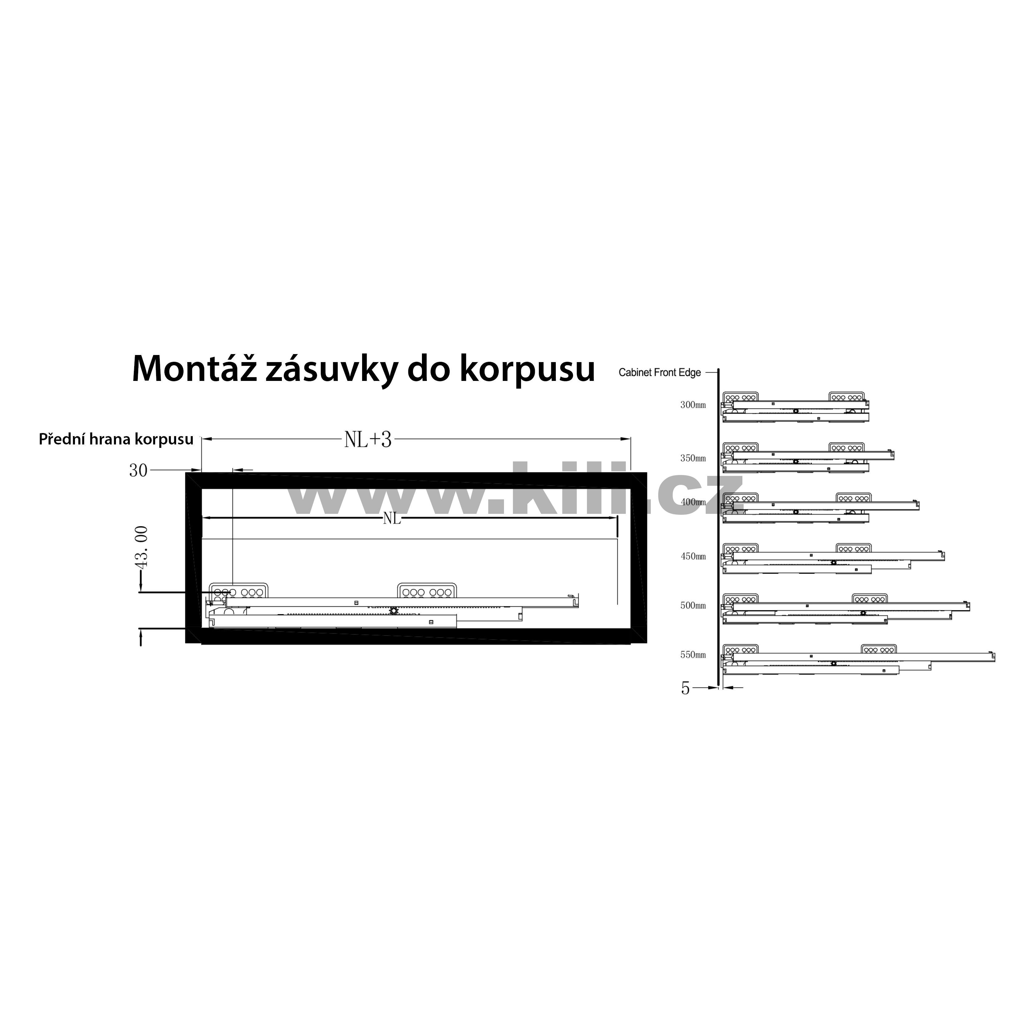 Kompletní zásuvka KILI CHILLI BOX s tlumením bílá 184 mm 500 mm, nosnost 35 kg