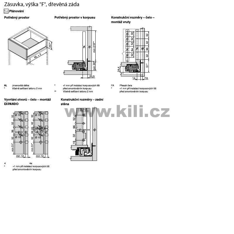 Kompletní zásuvka LEGRABOX bílá "F" 450 mm 40 kg s tlumením