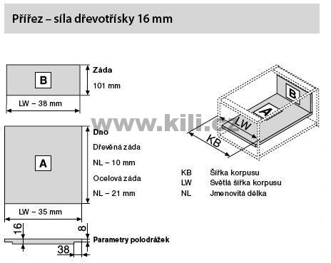Kompletní zásuvka LEGRABOX bílá "K" 450 mm 40 kg s tlumením