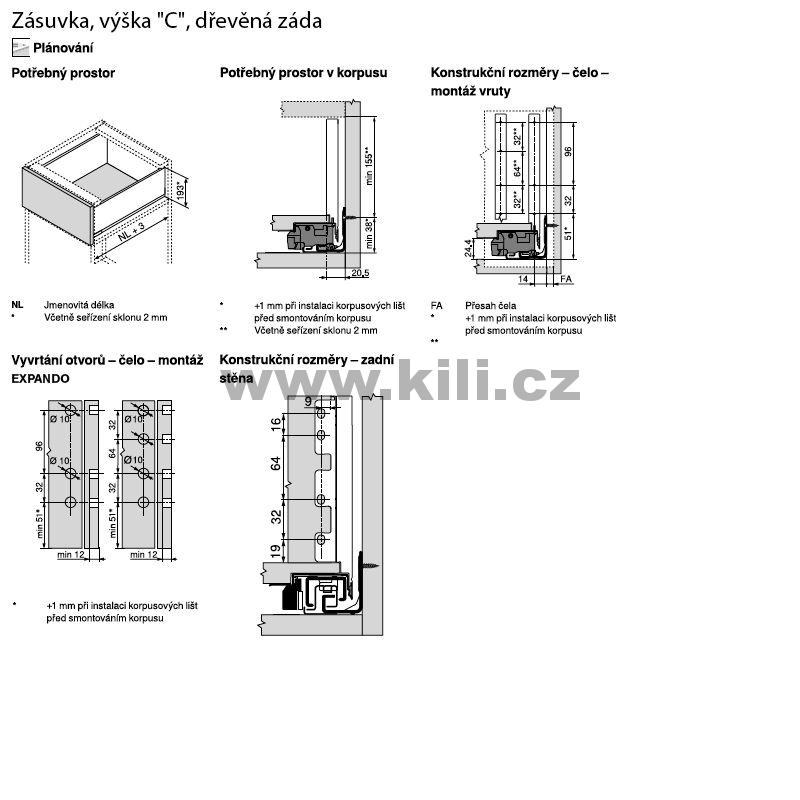 Kompletní zásuvka LEGRABOX nerez "C" 650 mm 70 kg s tlumením