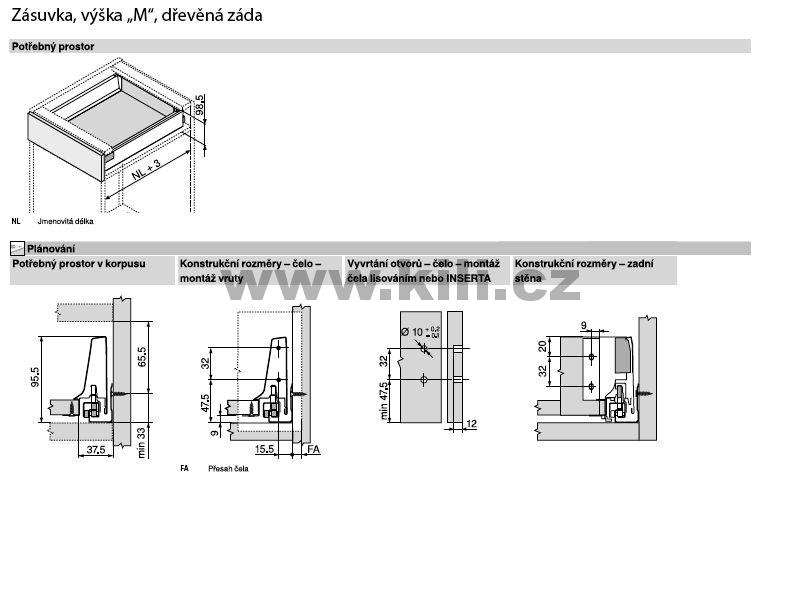 Kompletní zásuvka TANDEMBOX Antaro bílá "M" 650 mm 65 kg s tlumením
