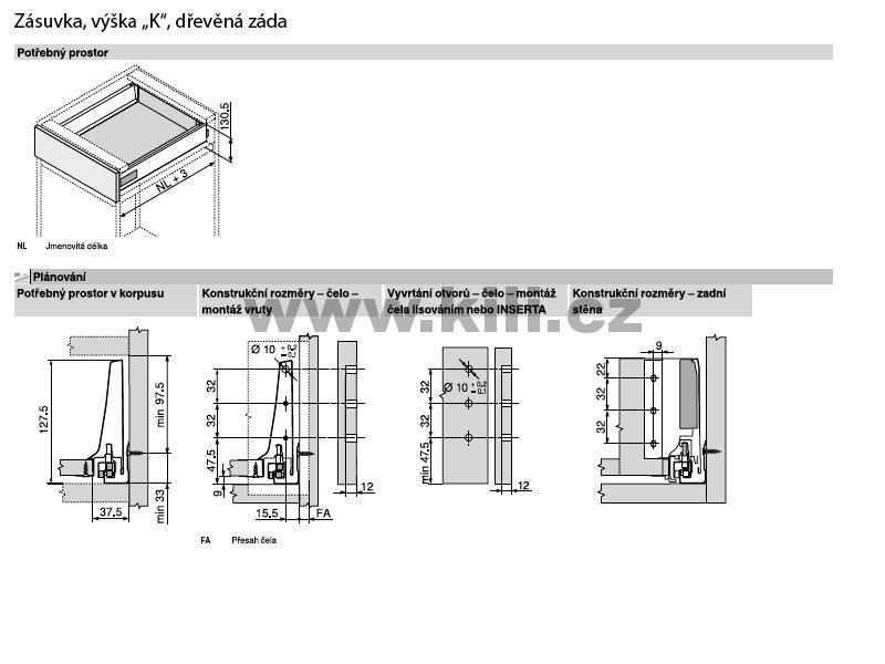 Kompletní zásuvka TANDEMBOX Antaro šedá "K" 650 mm 65 kg s tlumením