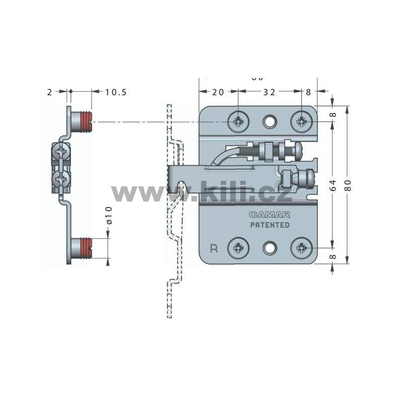 CAMAR 807 krytka rektifikačního kování plast bílá - levá