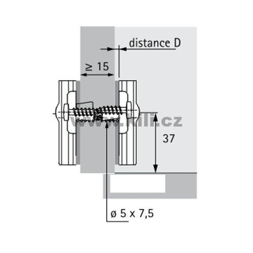 • Montáž Hettich Direkt s naváděcími čepy a speciálními vruty (pro vrtání ? 5 x 7,5 mm)