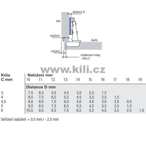 • Integrované seřízení naložení + 0,5 mm, - 2,5 mm