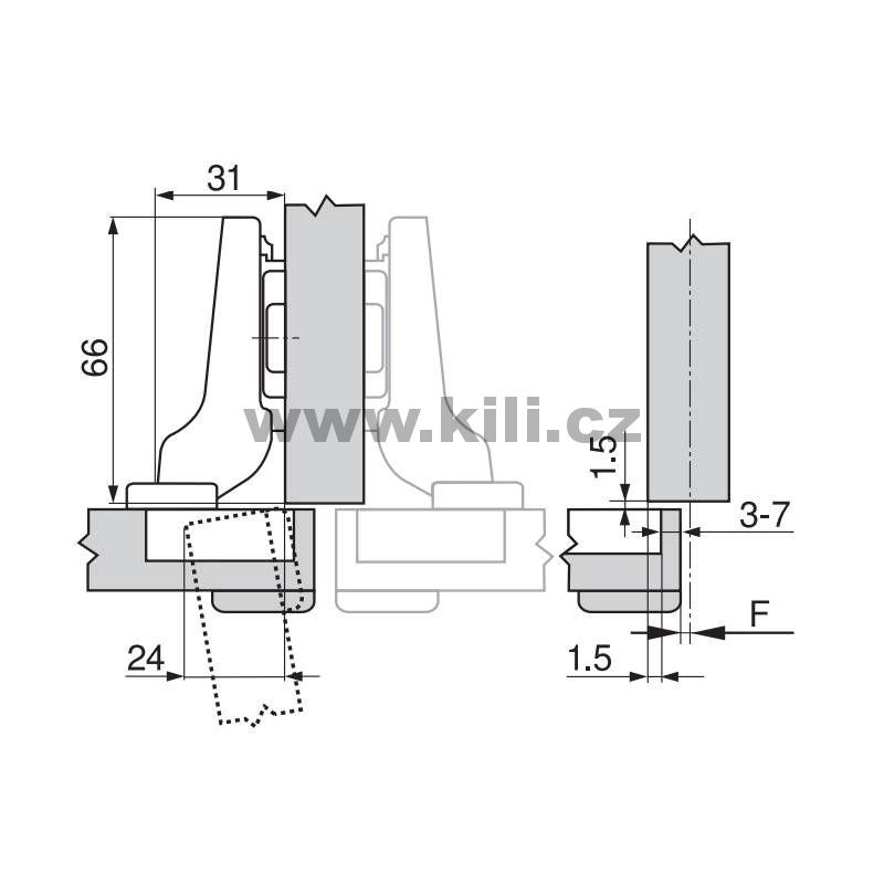 Závěs CLIP top polonaložený silné dveře nikl 95° bez pružiny na vrut
