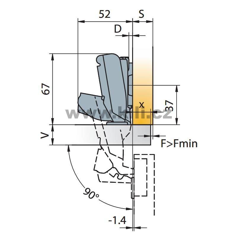 TI-Závěs S-type 165°naložený na vrut rozteč 45 mm