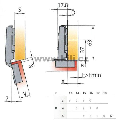 TI-Závěs S-type naložený 110° s eurošrouby rozteč 45 mm
