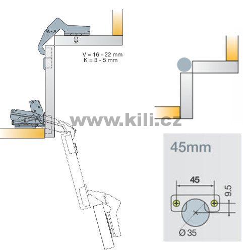 TI-Závěs S-type pro skládané dveře na vrut rozteč 45 mm