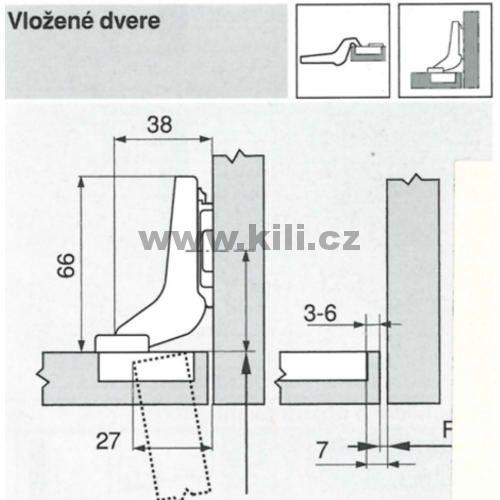 Závěs CLIP vložený 100° bez pružiny na vrut