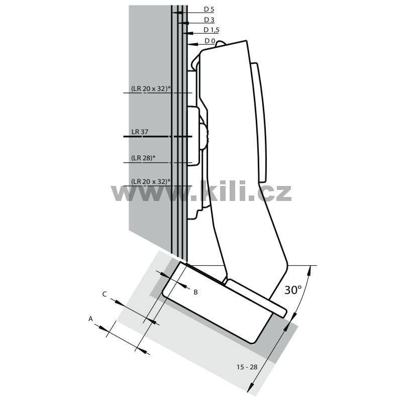 Odkaz na stránky výrobce: Závěs SENSYS clip naložený W30 95° pro Push to open bez pružiny na vrut rozteč