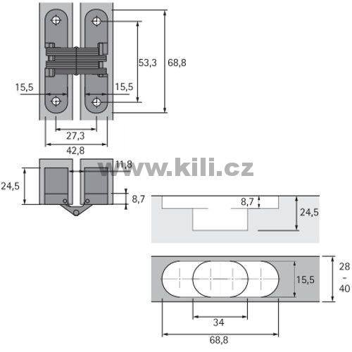 Odkaz na stránky výrobce: Závěs pro skládané dveře tloušťka 28-40 mm, 180°, broušená nerezová ocel