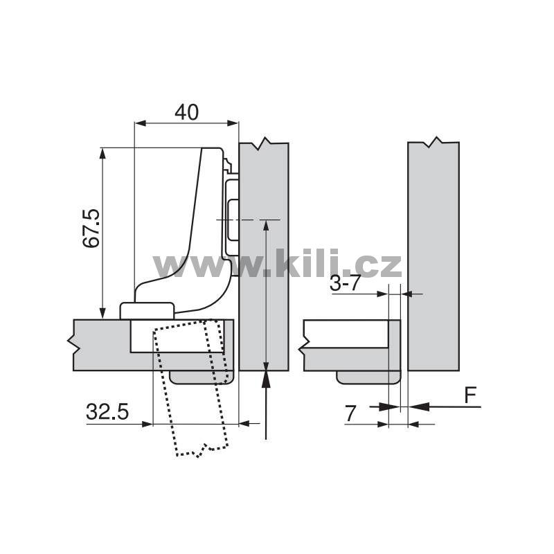 Závěs CLIP top vložený silné dveře nikl 95° bez pružiny na vrut