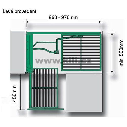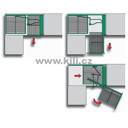 Výsuv s otevíráním doleva pro rohovou skříňku 90 až 100 cm. S tlumením SoftStopp a ClickFixx (jednoduchá a rychlá montáž - bez speciálního nářadí)