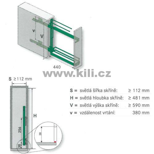 | Specifikace | Hloubka: 481 mm Šířka: 112 mm Výška: 590 mm |