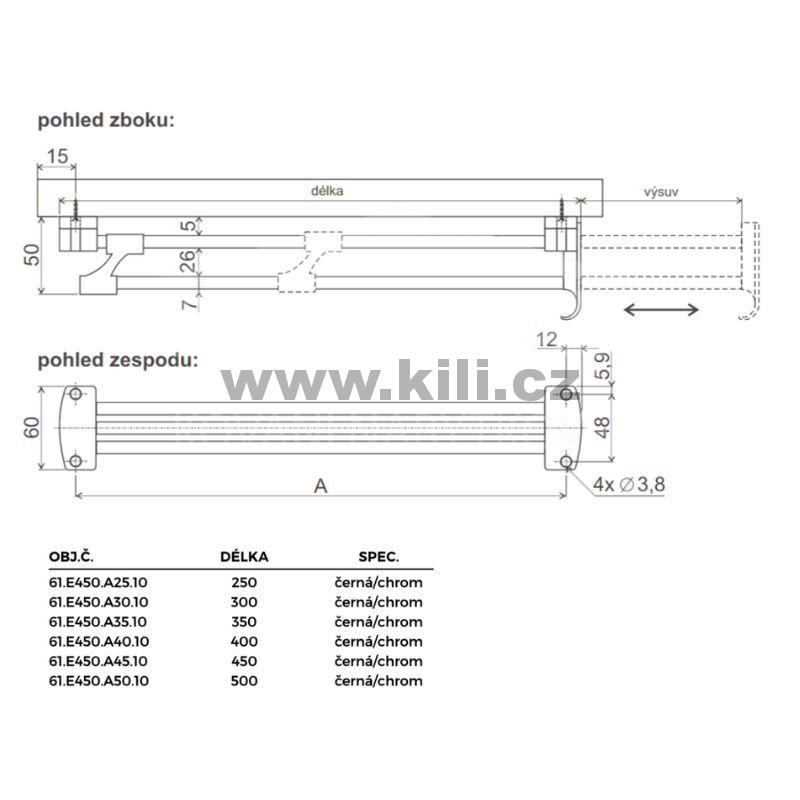 Věšák výsuvný LEVEL 500 mm, dvojitý chrom/černá
