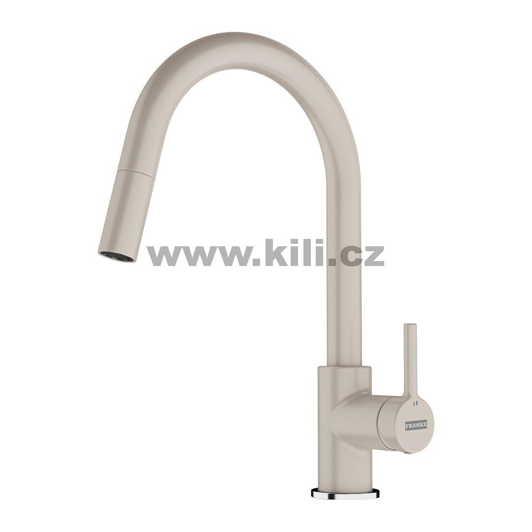 Tlaková páková směsovací baterie, otočná 360°, s vytahovací koncovkou opatřenou perlátorem.
